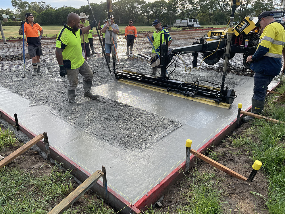 When it comes to synthetic cricket pitch installation, the base must be cast as a single concrete slab that needs to be completely level and true in all directions. Where limitations prevent a single slab from being poured, two slabs can be used and interlocked in the middle to prevent slipping or settling.